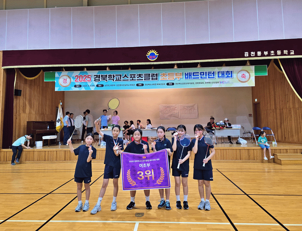 호서남초등학교(교장 노선하)는 9월 6일(토) 김천동부초등학교에서 개최된 2025 경상북도 학교스포츠클럽대회 배드민턴 종목에서 여자 대표팀이 당당히 3위에 입상하는 쾌거를 거두었다. 이번 대회는 경상북도 내 초·중·고등학교 학생들이 참가하여 열띤 경합을 펼친 가운데, 호서남초 여자팀은 뛰어난 기량과 끈끈한 팀워크로 준결승까지 진출하며 값진 성과를 거두었다.