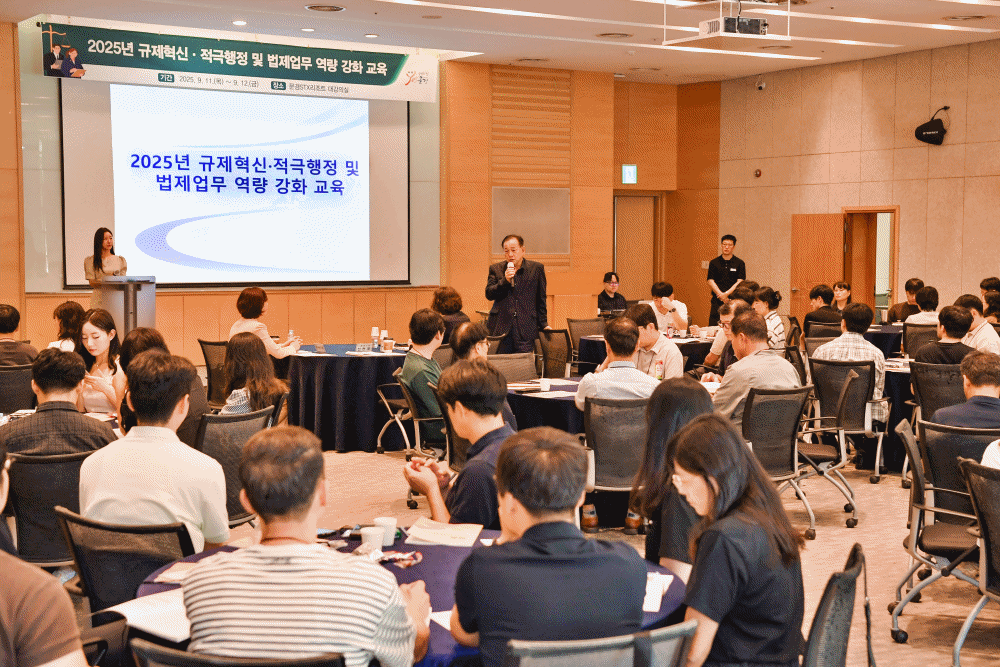 문경시는 지난 9월 11일(목)부터 12일(금)까지 이틀간 문경STX리조트에서 공직자 100여명을 대상으로 「2025년 규제혁신·적극행정 및 법제업무 역량 강화 교육」을 실시했다.