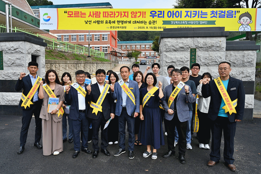 경상북도 문경교육지원청(교육장 유진선)은 2025년 9월 15일(월) 오전 8시부터 모전초등학교 정문 앞에서 학생들의 안전한 등굣길을 위한 ‘아동 유괴 예방 등굣길 안심 캠페인' 행사를 실시하였다.