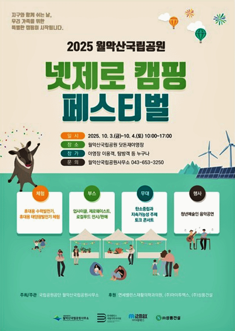 윤재은 자원보전과장은 “넷제로 캠핑 페스티벌은 야영객과 지역사회가 함께 탄소중립 문화를 체험할 수 있는 의미 있는 자리”가 될 것이며, “많은 분들이 참여하여 즐기고 배우는 기회가 되기를 바란다”고 전했다