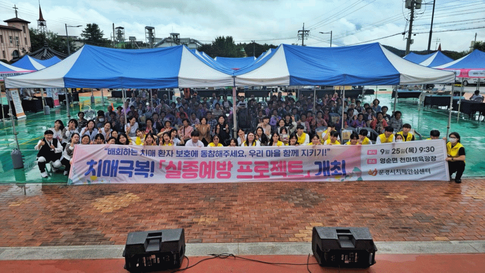 문경시치매안심센터는 지난 25일 영순면 천마광장에서 지역 주민 및 유관기관 직원 등 200여 명과 함께 치매 환자의 실종 상황에 대응하고자‘치매극복 실종예방 프로젝트’ 훈련을 했다.