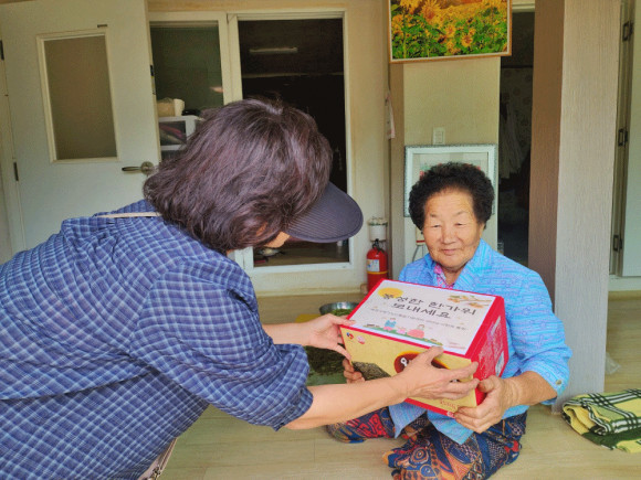 센터는 소외계층 어르신들이 넉넉하고 따뜻한 추석을 보내시길 바라는 마음으로 오미자김 선물세트를 전달하며 어르신들의 건강과 안부를 살폈다.