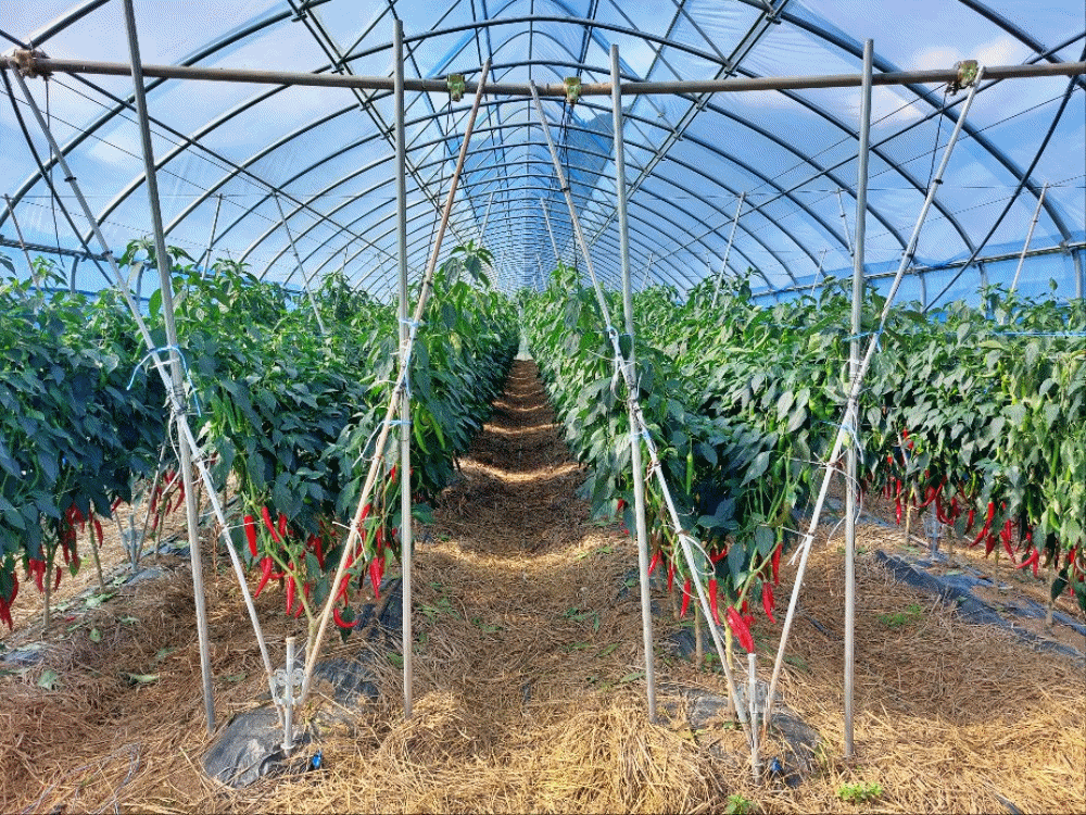 그러나 고추는 여름철 고온성작물로 기존의 노지재배에서는 강우로 인한 탄저병·역병으로 인한 생산량 감소와 육묘기 칼라병 감염에 따른 품질 저하와 수량 감소 문제가 지속돼 왔다.