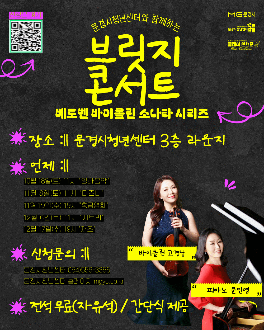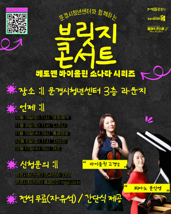 문경시청년센터는 오는 10월부터 12월까지 문경시청년센터 3층 라운지에서 클래식을 주제로 한‘브릿지 콘서트’를 연다.