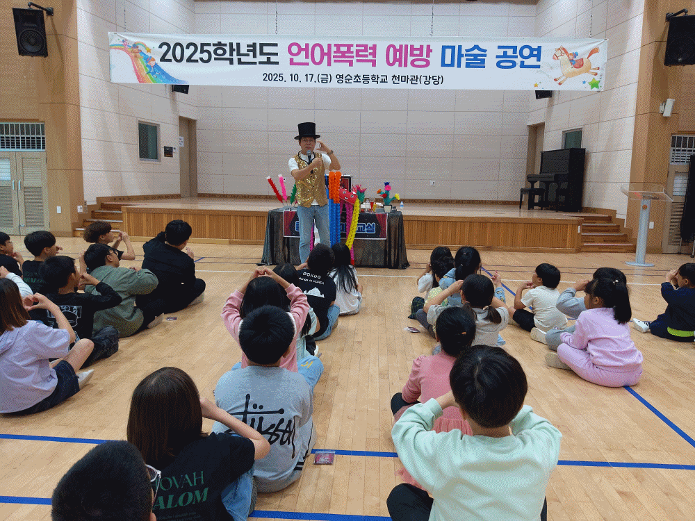 영순초등학교(교장 최인규) 유치원 및 1~6학년 학생들은 2025년 10월 17일(금) 언어폭력 예방 마술 공연을 실시하였다.