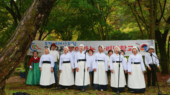 지난 10월 18일(토) 오전 10시 나뭇잎이 서서히 물들어 가고, 가을비가 소리 없이 내리는 가운데 문경새재 주흘관 옆 소나무 숲에서 아리랑도시문경시민위원회(위원장 이만유)가 주관한 금년도 마지막‘찾아가는 아리랑학교’가 많은 관광객이 참석한 가운데 성황리에 개최되었다.