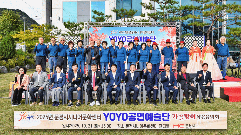 문경시 시니어문화센터는 지난 21일 300여 명의 관람객이 찾은 가운데 시니어문화센터 앞 광장에서 23명의 어르신들이 취미 활동으로 갈고닦은 실력을 뽐내는 ‘2025년 문경시 시니어문화센터 YOYO공연예술단 가을맞이 작은 음악회’를 열었다.