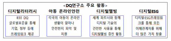 DQ연구소는 싱가포르에 소재한 디지털 교육 및 정책분야의 글로벌 표준 연구기관으로, 2019년 디지털지능(Digital intelligence quotient) 글로벌 국제표준보고서를 수립하고, 디지털 인재 10억명 양성을 목표로 하고 있다.