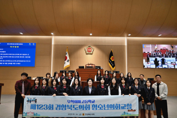 경상북도의회는 10월24일(금) 본회의장에서 상주 우석여자고등학교 학생 19명이 참여한 가운데『제123회 경상북도의회 청소년의회교실』을 개최했다.