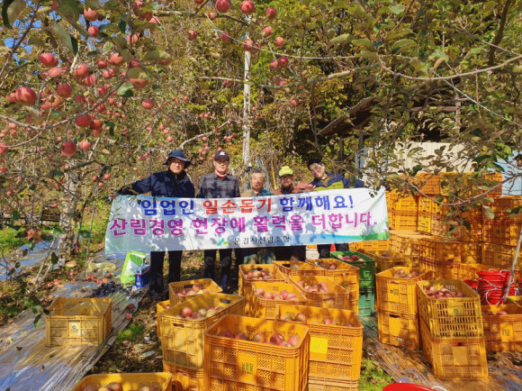 문경시산림조합은 최종성 산림조합장과 직원들이 11월 7일 가은읍 작천리 남정달(67)씨 사과 농가를 찾아 임업인 일손돕기에 구슬땀을 흘렸다.