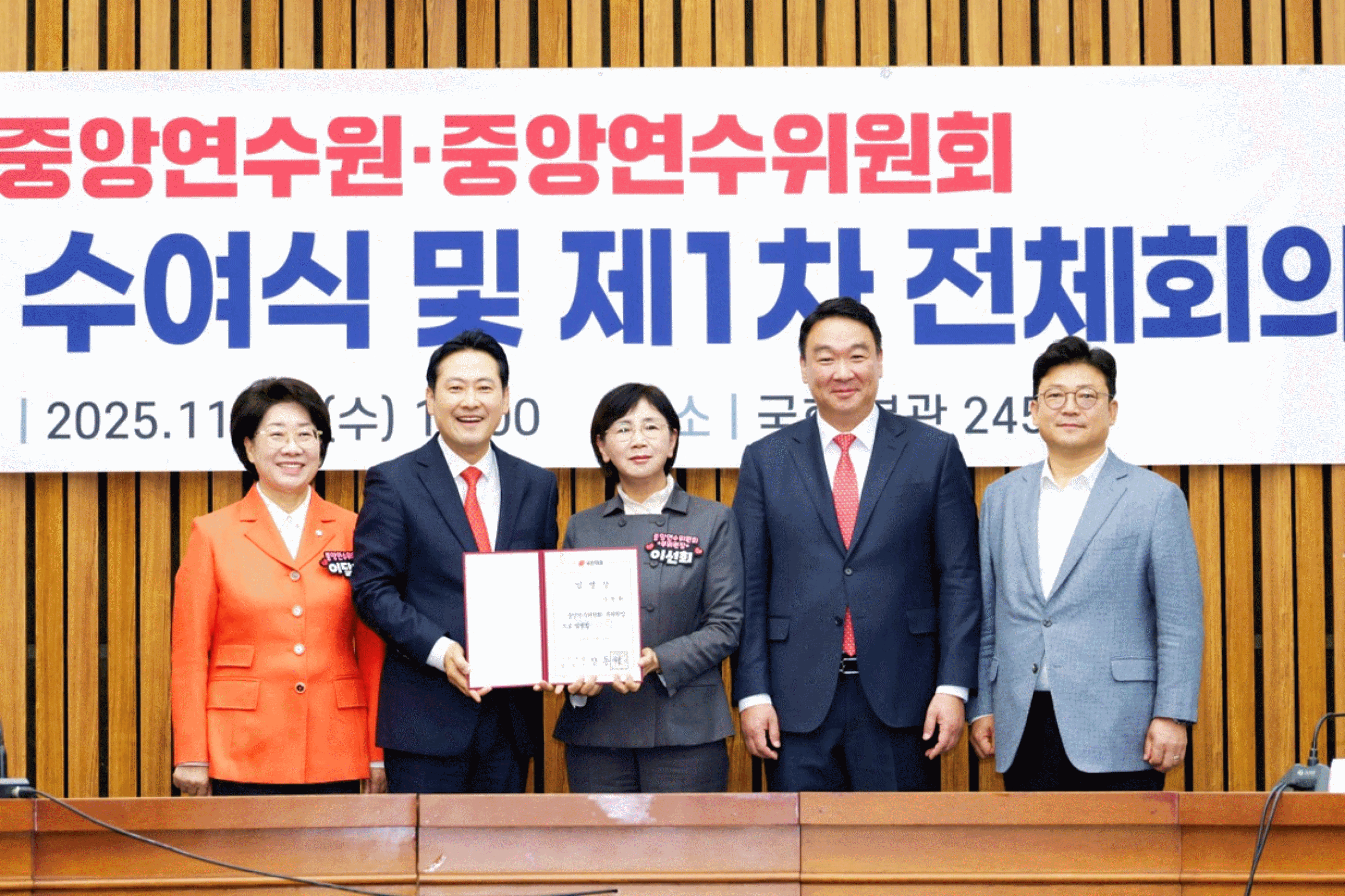 이선희 경상북도의회 기획경제위원장(청도)은 지난 11월 12일 국회 본관 회의실에서 개최된 국민의힘 중앙연수원·중앙연수위원회 임명장 수여식 및 제1차 전체회의에서 장동혁 국민의힘 대표로부터 「중앙연수위원회 부위원장」 임명장을 수여받았다.