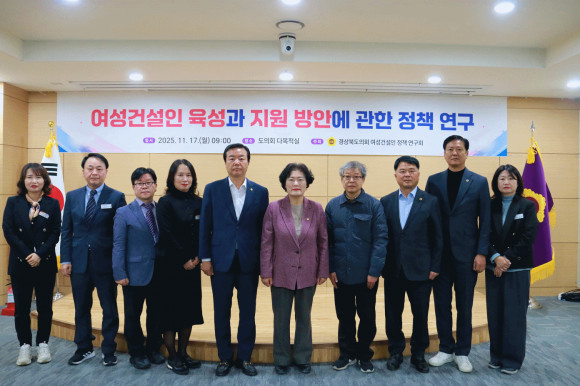경북도의회 「경상북도의회 여성건설인 정책 연구회」(대표 남영숙 의원)는 17일(월) 오전 9시 도의회 회의실에서 ‘여성 건설인 육성과 지원 방안에 관한 정책 연구용역’ 최종보고회를 개최했다.