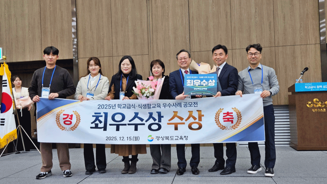 경북교육청(교육감 임종식)은 15일 청주시에 있는 청주오스크에서 열린 ‘2025년 학교급식 우수사례 공모전’ 시상식에서 최우수상을 받으며, 4년 연속 최우수상 수상의 성과를 달성했다고 밝혔다.