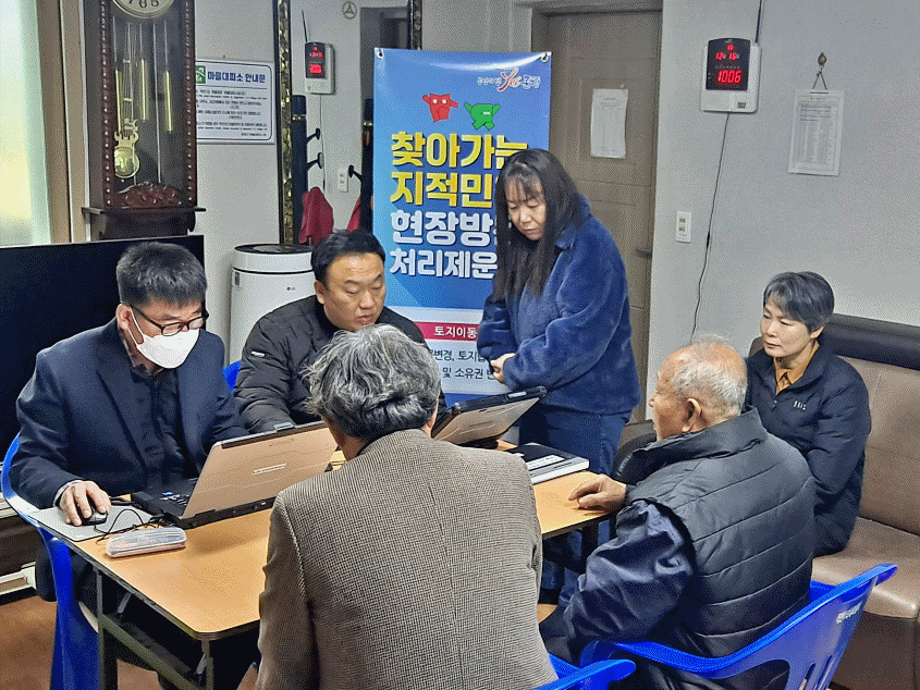 이날 현장에는 문경시 종합민원과 지적팀과 한국국토정보공사(LX) 문경지사 직원들로 구성된 합동처리반이 참여해, 지목변경·토지합병·조상땅찾기 등 토지이동 민원과 분할·등록전환·경계복원 등 지적측량 민원에 대한 상담과 접수를 실시했다. 현장을 찾은 주민들은 평소 접근하기 어려웠던 지적 민원을 마을회관에서 편리하게 상담받을 수 있어 큰 호응을 보였다.