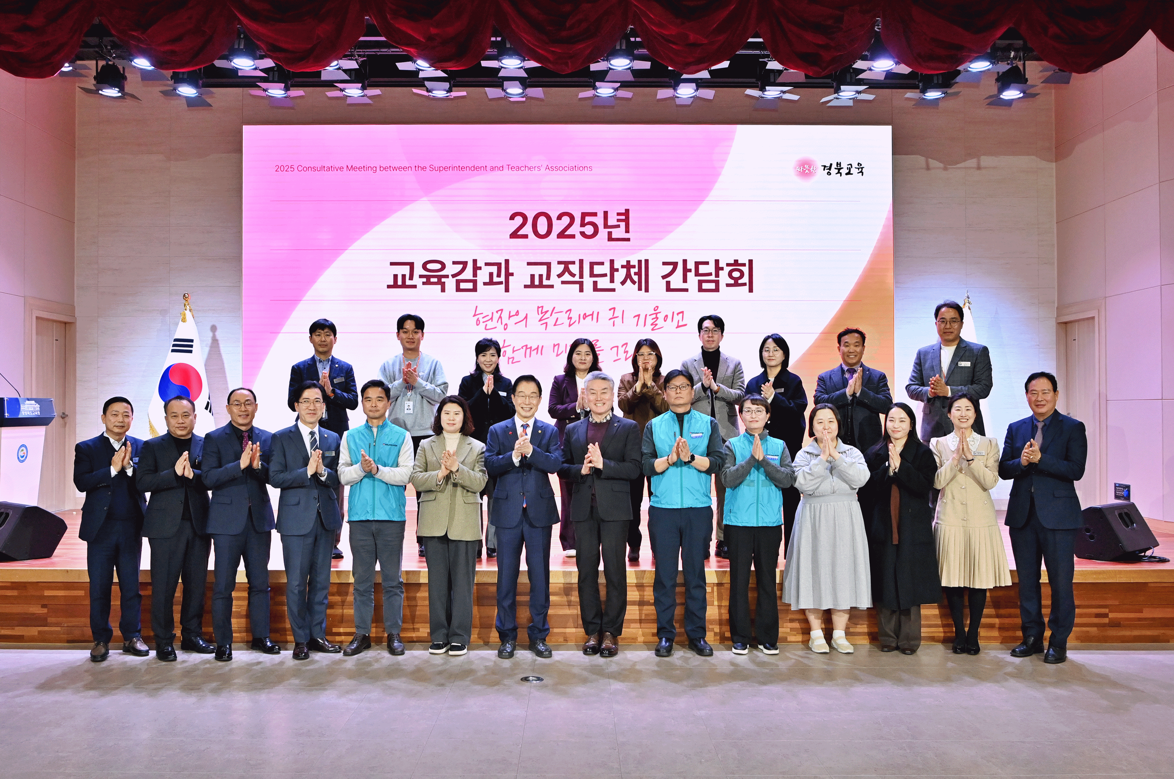 경북교육청(교육감 임종식)은 18일 본청 웅비관에서 ‘2025년 교육감과 교직단체와의 간담회’를 열고, 학교 현장의 생생한 목소리를 듣는 소통의 시간을 가졌다고 밝혔다.