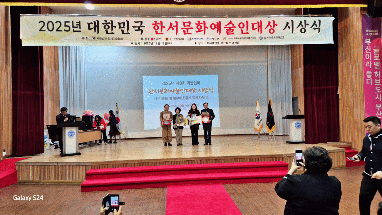전문예술법인 (사)한서미술협회는 대한민국 문화예술인을 위해 각 분야에서 문화예술발전을 위해 헌신한 인물을 선정하여‘2025 대한민국 한서 문화예술인 대상 시상식’을 한국자유총연맹 부산회관 대강당에서 개최했다.