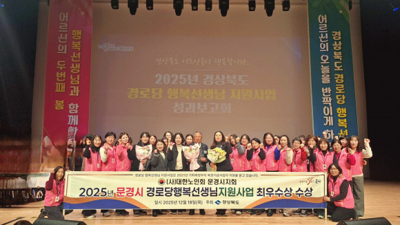(사)대한노인회 문경시지회(지회장 박경규)는 12월 18일 경북도청 동락관에서 개최된 2025년 경로당행복선생님지원사업 성과보고회에서 수행기관 최우수상과 경로당행복선생님 유공 부문에서 김엄미 경로당행복선생님이 도지사표창을 수상했다.