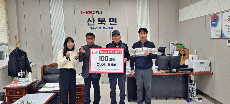 김우근 산북면장은 “이웃을 먼저 생각해 주신 기부자의 소중한 뜻에 깊이 감사드리며, 자발적인 성금 모금 참여는 건강한 지역사회의 든든한 기반이 될 것으로 소중한 성금은 취약계층을 위해 뜻깊게 사용하겠다”고 말했다.