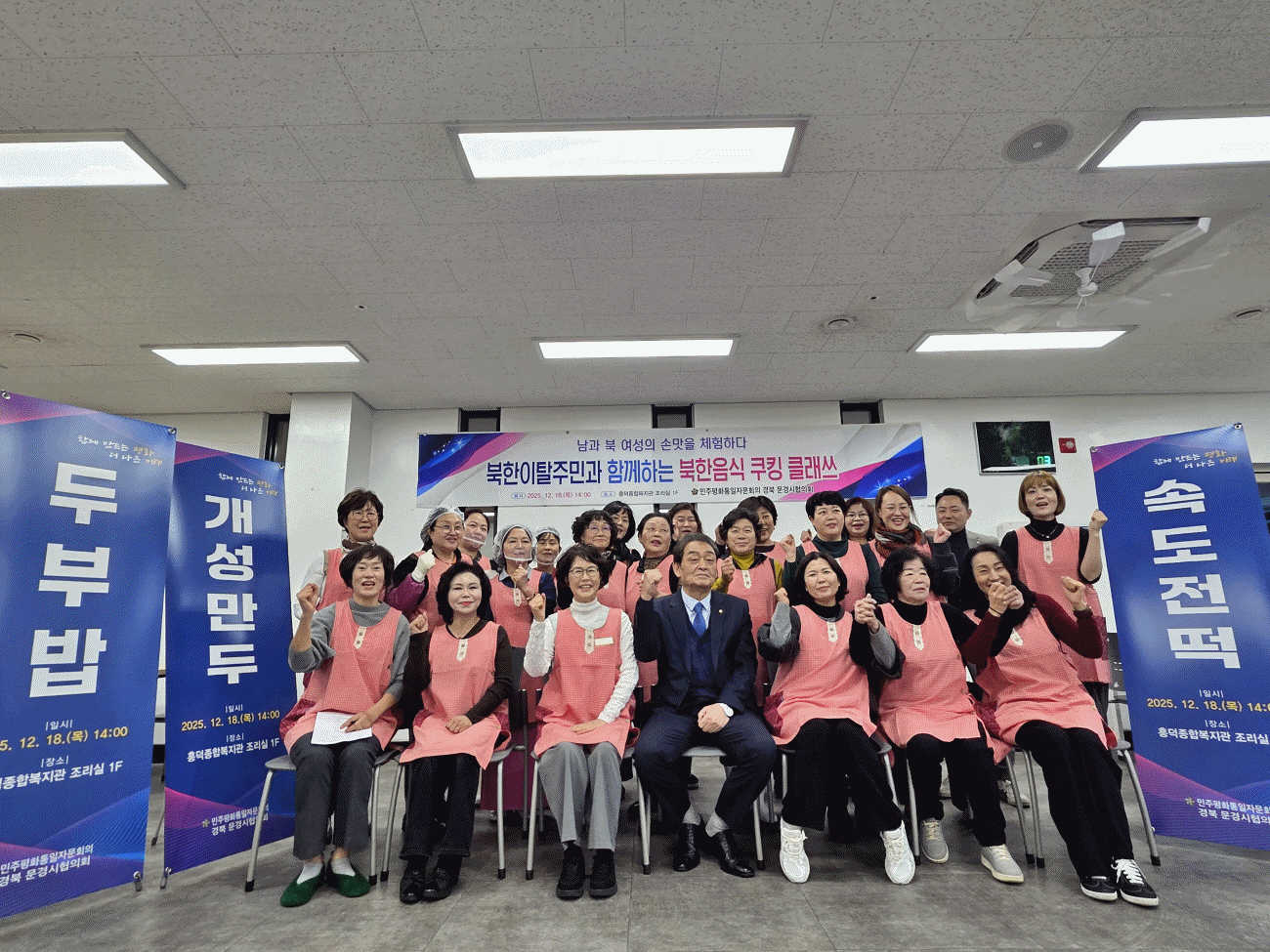 이번 쿠킹클래스는 여성분과(위원장 김명순)에서 준비한 행사로 개성만둣국, 두부밥, 속도전떡, 잡채, 배추전 등 북한 주민들의 일상과 명절에 먹던 대표 음식들을 함께 만들어 보면서, 단순한 요리 체험을 넘어 음식에 담긴 북한의 생활사와 개인의 경험담을 자연스럽게 나누는 소통의 시간이 되었다.