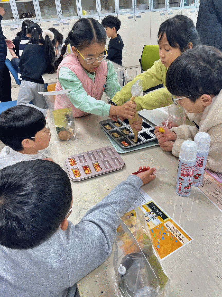 이번 활동은 쏘낭시에, 크리스마스 트리쿠키, 떠먹는 케이크 3종 등 세 가지 간식을 직접 만들어보는 체험으로 구성되었으며, 장애학생과 비장애 학생이 함께 어울려 참여하는 통합형 프로그램으로 진행되었다. 만들기의 즐거움 속에서 서로를 이해하고 배려하는 마음을 자연스럽게 배울 수 있는 시간이 되었다.