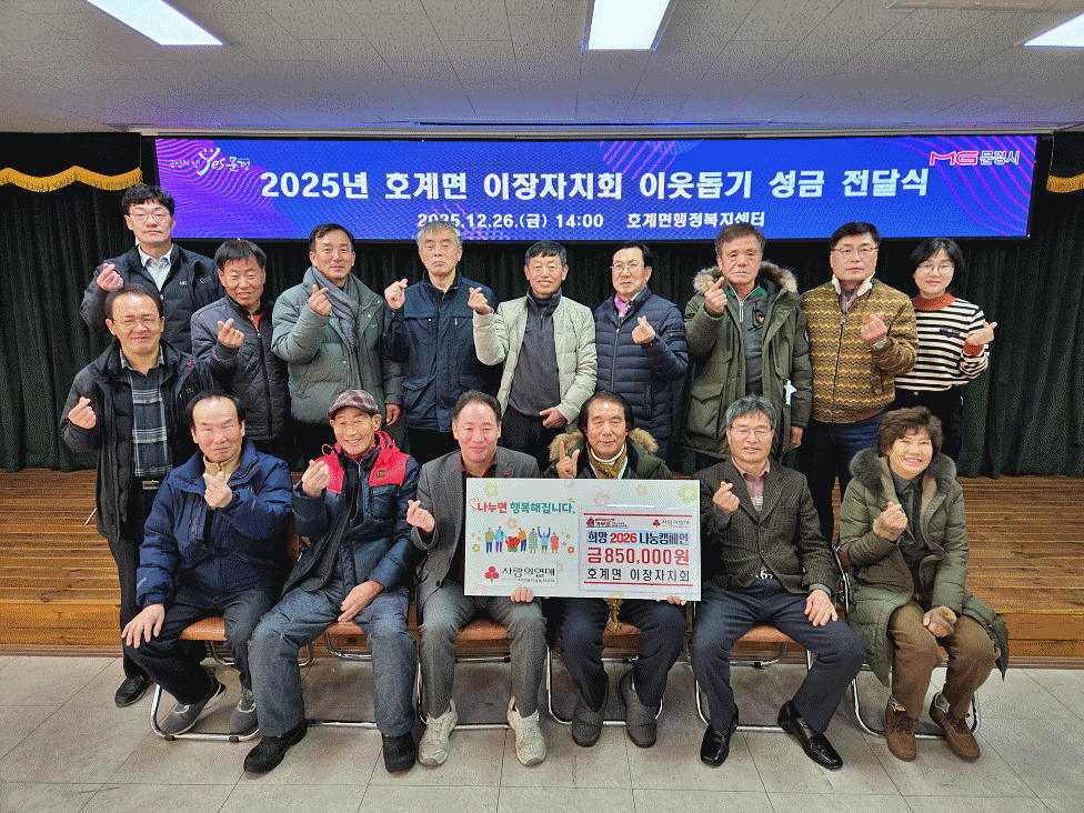 문경시 호계면 이장자치회(회장 권순용)는 지난 26일 지역 내 어려운 이웃을 위한 연말 이웃돕기 성금 85만 원을 전달했다.