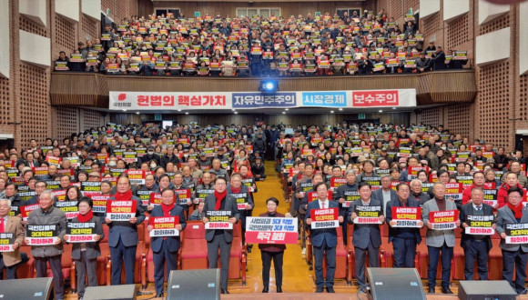 교육장 내 1층은 물론 2층 복도를 가득 메웠고, 행사장 외부에도 중계 화면을 통해 교육에 참석한 당원들이 로비를 가득 채웠다. 행사에 앞서 국민의힘 상주·문경 당원협의회는 입법 독재를 일삼는 이재명 정부와 민주당을 강력 규탄하며, 피켓을 들고 구호를 외쳤다.