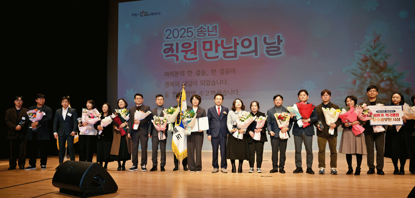 경상북도는 29일 도청 동락관에서 개최한 ‘2025년 송년 직원 만남의 날’행사에서 창의성과 전문성을 바탕으로, 적극적으로 업무를 처리한 2025년 하반기 적극행정 우수공무원 4명을 시상하고 격려하는 자리를 가졌다.