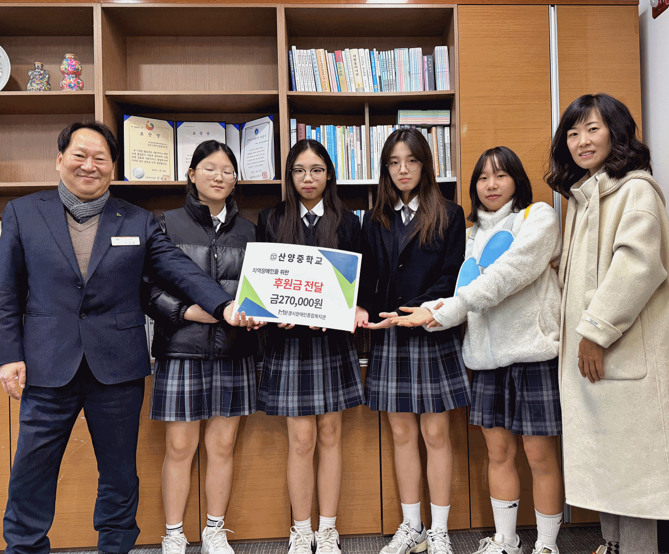 이날 전달받은 후원금은 산양중학교에서 함께라서 반짝인 시간이라는 주제로 열린 2025년 불암제 축제에서 진행한 바자회 수익금으로 지역장애인을 위해 쓰여질 예정이다.