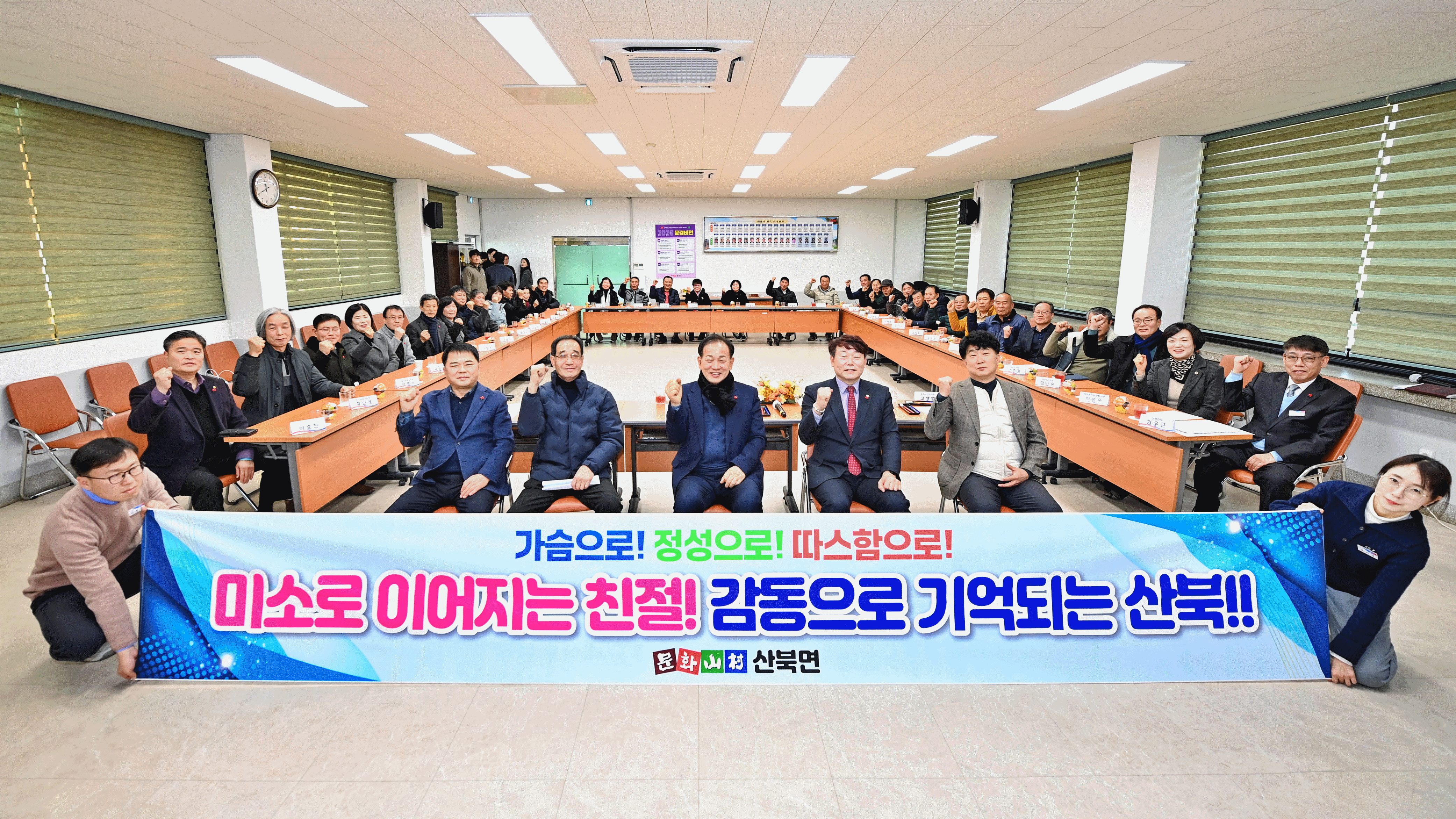문경시 산북면(면장 김우근)은 지난 13일 산북면 행정복지센터에서 ‘2026년 산북면 공감·소통 간담회를 개최했다. 이번 간담회에는 신현국 문경시장을 비롯해 경상북도의회 김창기 의원, 문경시의회 남기호 총무위원장, 고상범 의원과 산북면 기관 단체장, 각 리 이장 등 40여 명이 참석했다.