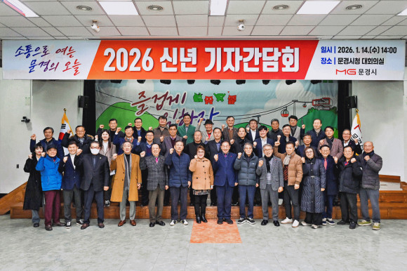 문경시는 1월 14일(수) 오후 2시, 문경시청 대회의실에서 2026년 신년 기자간담회를 개최하고 시정 운영 전반과 2026년 신년 시정방향을 발표했다.