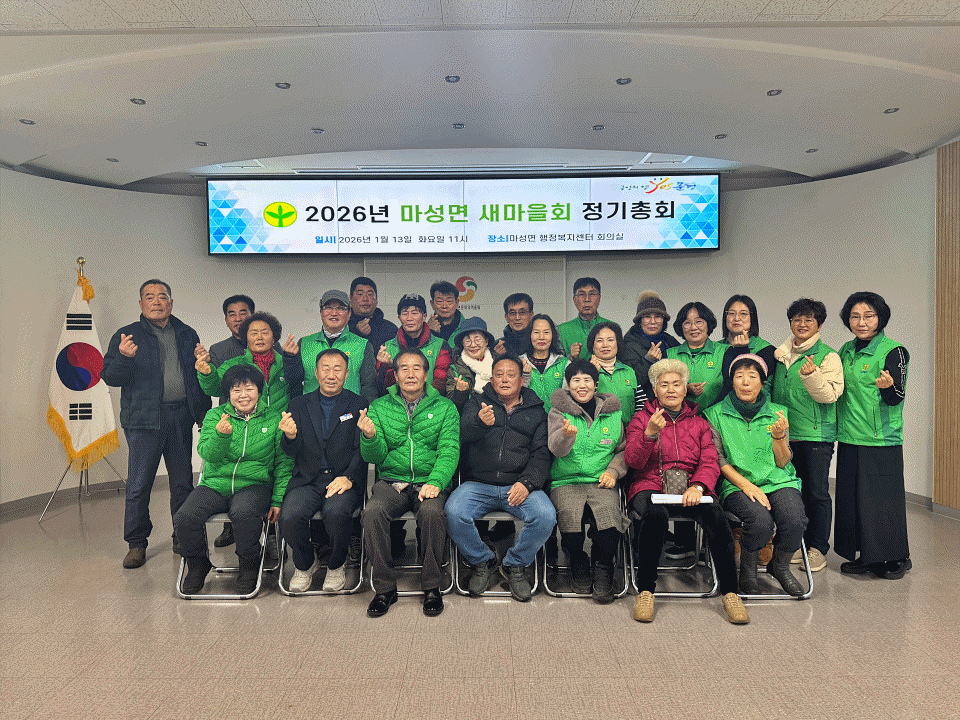 마성면 새마을회(협의회장 이승중, 부녀회장 김대진)는 13일 마성면 행정복지센터에서 관내 회원들이 참여한 가운데 2026년 정기총회를 개최했다.