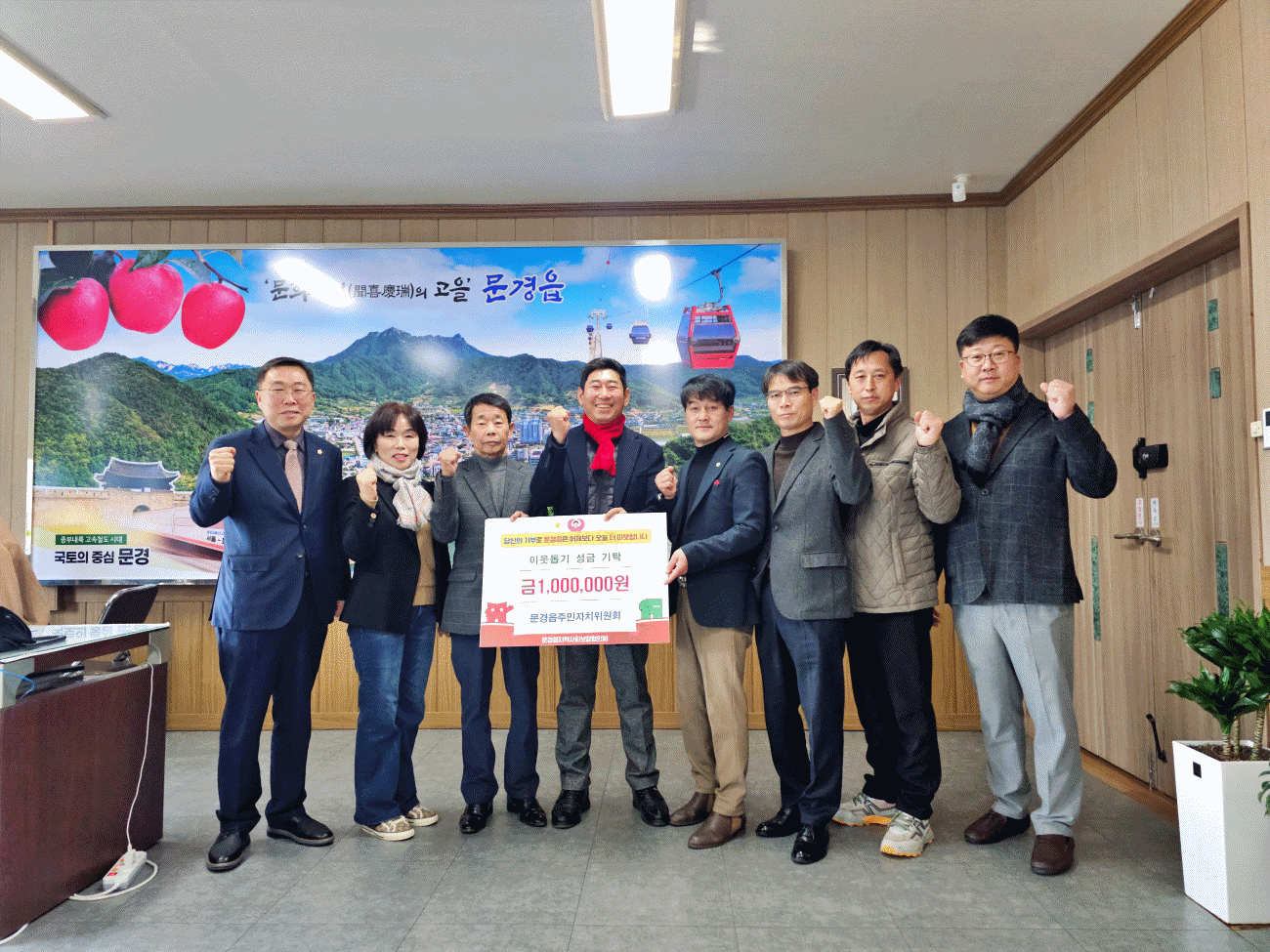 김재선 문경읍장은 “주민의 삶의 질 향상과 지역 발전을 위해 힘써주시고 어려운 이웃을 살피는데 관심을 가져준 주민자치위원회에 감사드린다”며, “후원해 주신 성금은 따뜻한 마음을 담아 취약계층을 위해 잘 사용하겠다”고 말했다.