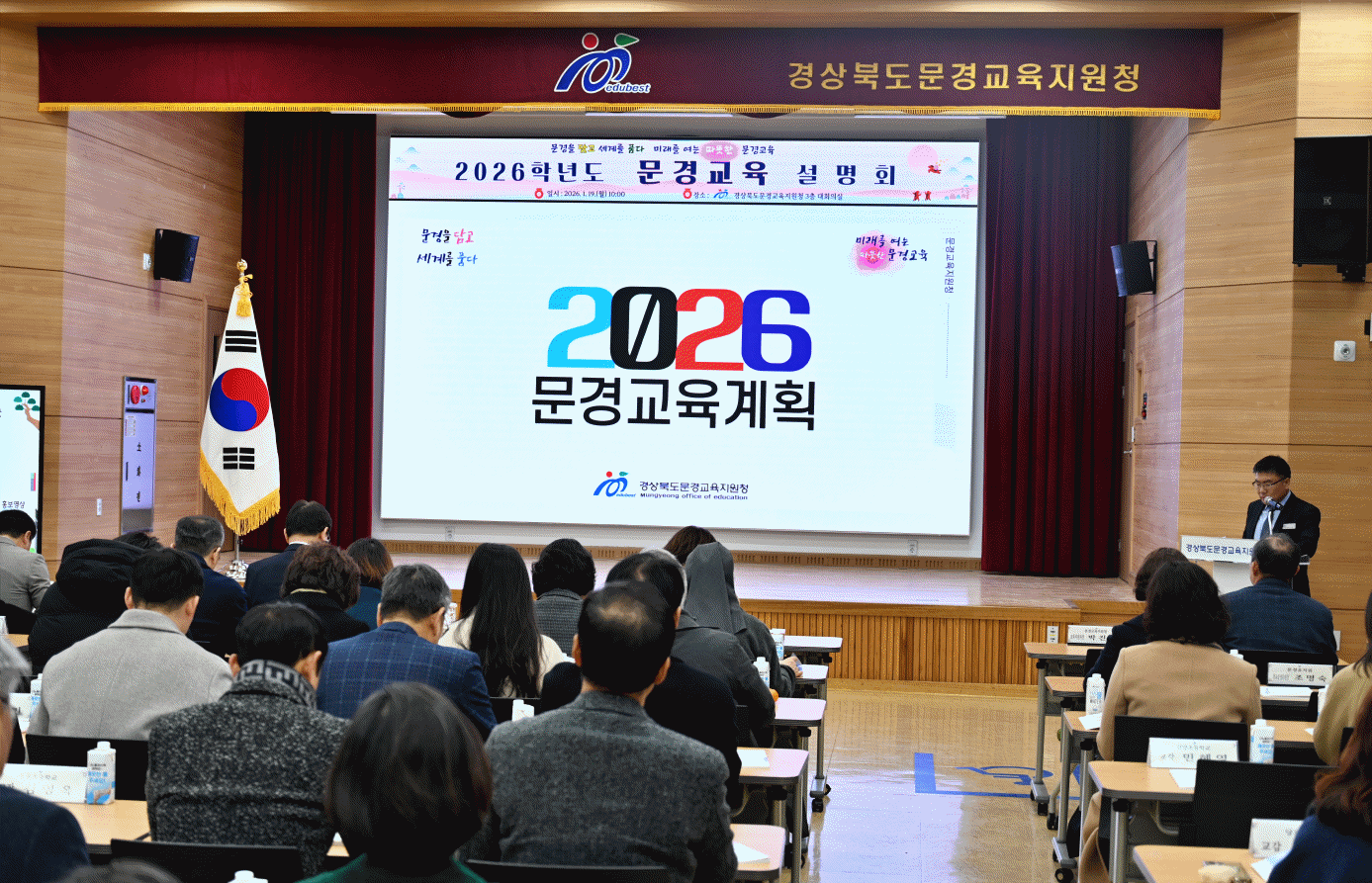문경교육지원청(교육장 유진선)은 2026년 1월 19일 월요일, 문경교육지원청 3층 대회의실에서 관내 공·사립 유·초·중·고등학교 학교(원)장과 각 학교운영위원장, 학부모회장협의회 임원, 업무 담당교사, 2026 문경교육 계획 수립 T/F팀 위원, 교육지원청 관계자 등 110여 명이 참석한 가운데 2026 문경교육 설명회를 개최하였다. 이번 설명회는 문경교육의 기본 방향과 중점 과제를 안내하고, 관내 학교들의 연간 교육계획 수립에 실질적인 방향을 제공하며, 교육공동체의 참여 기반을 확대하고 교육력 제고를 위한 협력적 토대를 마련하기 위해 마련되었다.