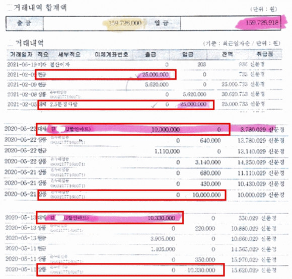 본지가 확보한 거래 내역에 따르면, 해당 상인회 명의 통장은 2021년 6월경까지 사용된 통장으로 A시의원은 통장 사용을 중단하기 직전인 지난 2021년 2월 5일에도 문경사랑상품권 2,500만원어치를 입금한 후 4일 후인 2월 9일, 모두 현금으로 인출한 사실도 밝혀졌다.