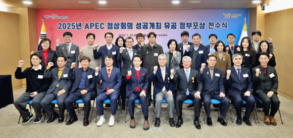 이날 전수 식에서는‘2025년 APEC 정상회의’를 역대 가장 성공한 대회로 이끈 공무원 및 민간인 25명이 참석하여 이철우 경상북도 지사로부터 정부포상을 전수 받았다.