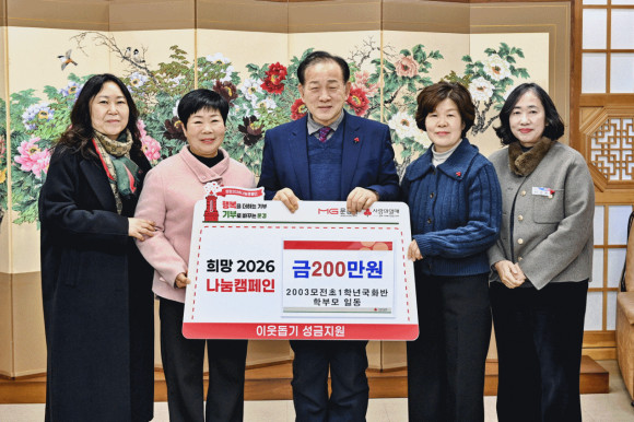 지난 22일 문경시청에서 2003 모전초 1학년 국화반 학부모 일동(대표 권영순), 문경새재상인회(회장 김범주)가 지역 사회에 따뜻한 마음을 전하기 위한 성금 전달식이 진행됐다.