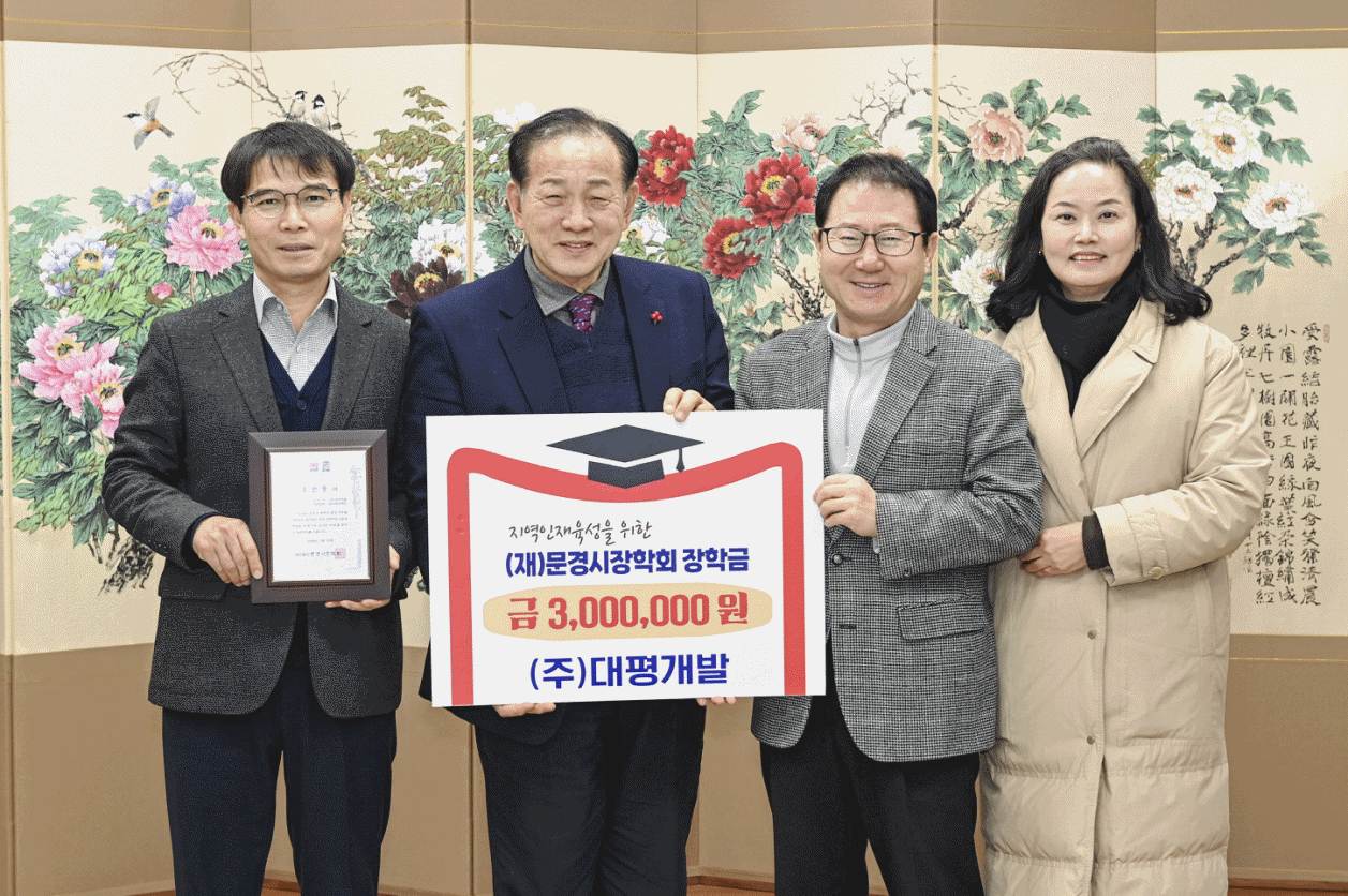 (재)문경시장학회(이사장 신현국)는 지난 22일 지역인재 육성을 위한 장학금으로 (주)대평개발에서 300만 원을, 문경컴퓨터정보통신에서 200만 원을 각각 기탁받았다.