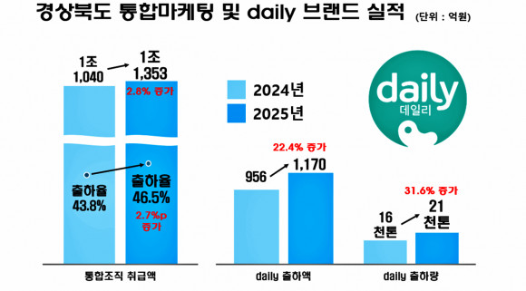 특히 경북 과수 통합브랜드 ‘daily(데일리)’는 전년 대비 22.4% 증가한 1,170억 원의 매출을 기록하며 브랜드 도입 이후 사상 최대 실적을 달성했다. 출하량 또한 전년 대비 31.6% 급증하며 시장 점유율을 대폭 끌어올렸다.