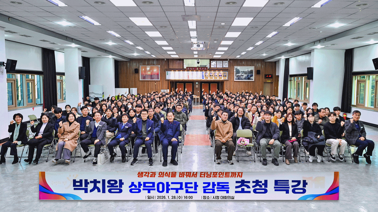 문경시는 지난 28일, 시청 대회의실에서 공직자들을 대상으로 박치왕 감독 초청 특별강연을 개최했다.