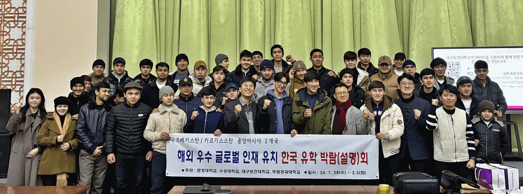 문경대학교(총장 신영국) 국제교육원(원장 강창교)은 지난 1월 28일부터 2월 3일까지 우즈베키스탄과 키르기스스탄 등 중앙아시아 2개국을 방문해 해외 우수 글로벌 인재 유치를 위한 “한국유학 박람회(설명회)”를 성공적으로 개최했다.