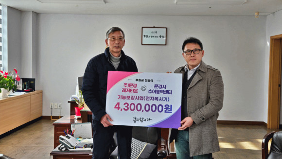 2026년 2월 6일 문경시수어통역센터는 문경레저타운(대표이사 정광호)으로부터 전자복사기 구입을 위한 기능보강 사업비 430만 원을 전달받았다고 밝혔다. 이번 후원은 지난해 스마트 교육장 구축 지원(660만 원)에 이은 2년 연속 사회공헌 활동이다.