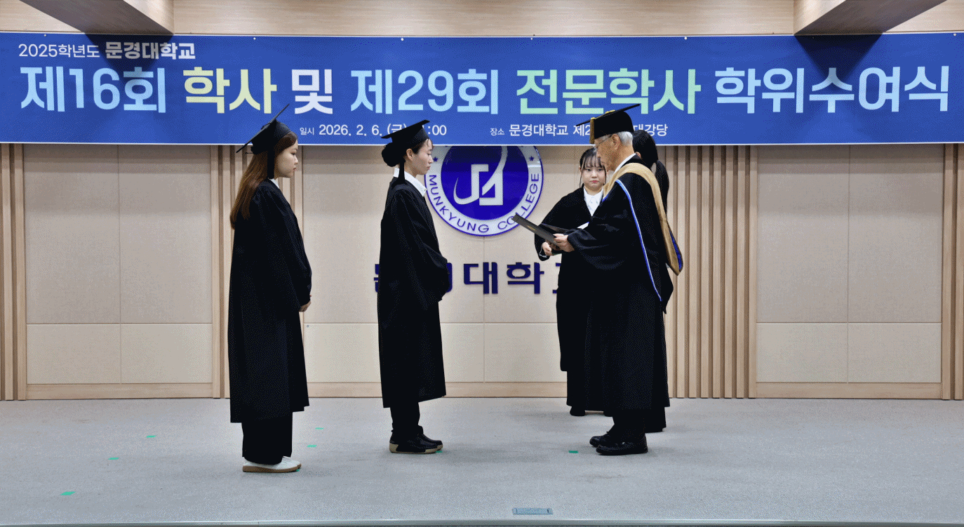 문경대학교(총장 신영국)는 2025학년도 제16회 학사 및 제29회 전문학사 학위수여식을 2월 6일 오전 11시 문경대학교 대강당에서 개최하고, 허지수(간호학과)외 222명의 졸업생을 배출했다고 밝혔다.