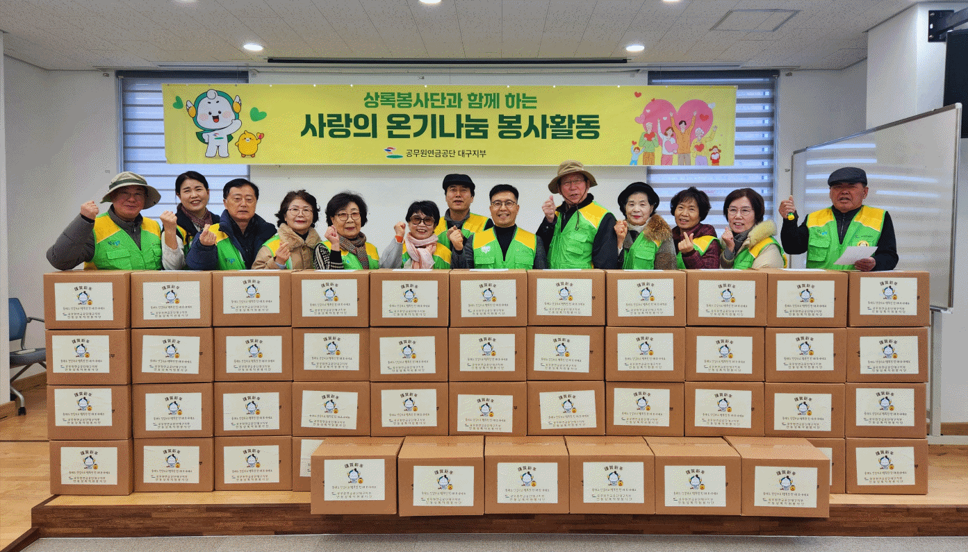 공단 대구지부 박종무 지부장은 “명절 기간 소외감을 느끼기 쉬운 어르신들에게 작은 온기가 되길 바란다”며, “앞으로도 상록자원봉사단과 함께 지속적인 정서지원과 나눔활동을 펼쳐 나가겠다”라고 말했다.