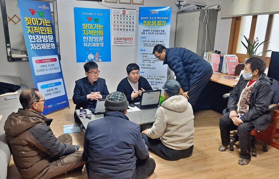 이날 현장에서는 토지 경계, 지목변경, 분할·합병 등 토지와 관련된 다양한 민원 상담이 이뤄졌으며, 특히 명절 연휴 온 가족이 모이기 전 미리 행정기관과 토지 문제를 상담함으로써 가족 간 충분한 논의와 이견 조율이 가능해졌다는 점에서 주민들의 만족도가 높았다.