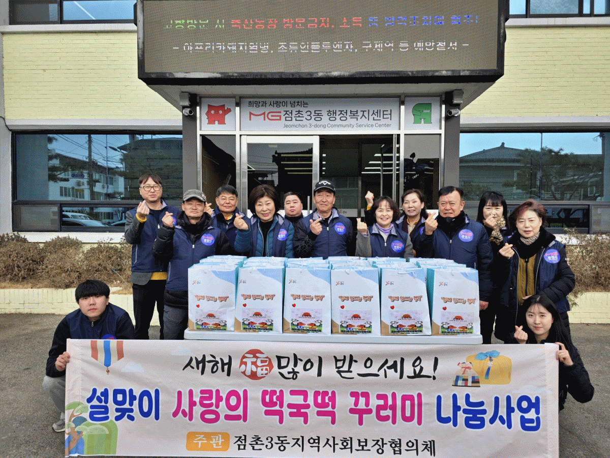 점촌3동 지역사회보장협의체(민간위원장 강재원, 공공위원장 김현주)는 지난 11일 병오년 설을 맞아 지역사회에 따뜻한 마음을 전달하고, 어려운 환경 속에 있는 어르신들을 위해 ‘설맞이 사랑의 떡국떡 꾸러미 나눔 사업’을 펼쳤다.