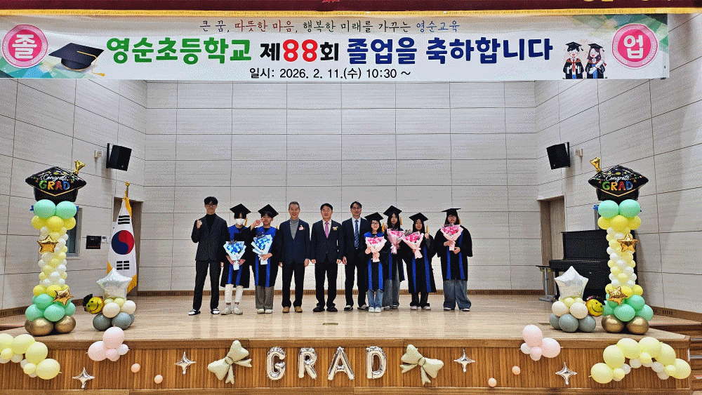 졸업생 정○○ 학생은 “영순초에서 보낸 시간은 평생 잊지 못할 소중한 추억이 되었고, 선생님들의 따뜻한 가르침을 마음에 새기며 앞으로도 열심히 노력하겠다”고 소감을 전했다.