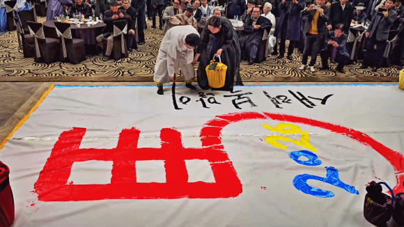 청암문화예술원 문청함원장 ‘말(馬)’ 휘호 퍼포먼스와 이철우도지사의 ‘새해 복 많이 받으세요’ 휘호로 큰 박수 갈채를 받았다.