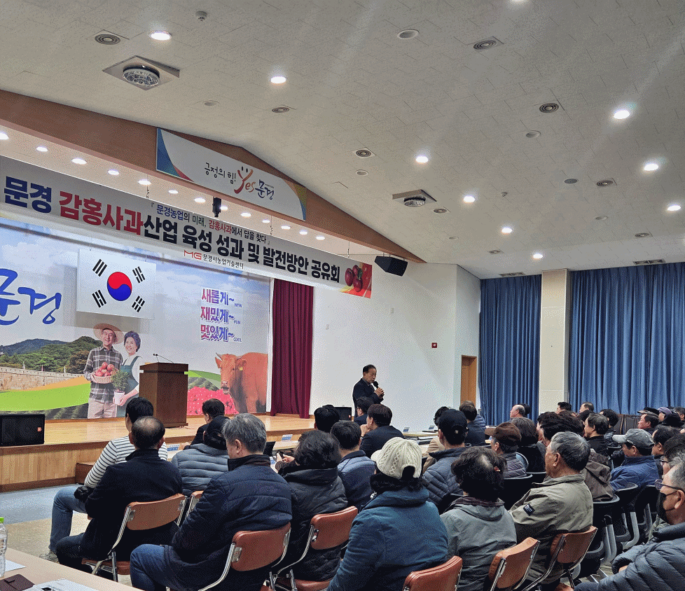 문경시는 지난 26일, 문경시농업기술센터 대강당에서「문경 감홍사과산업 육성 성과보고 및 발전방안 공유회」를 성황리에 개최했다. 이번 공유회에는 신현국 시장, 시의회 의장, 시의원, 관내 사과 재배농가 등 100여 명이 참석해 문경 감홍사과 산업의 그간 성과를 되짚고, 향후 발전 방향을 함께 공유했다.