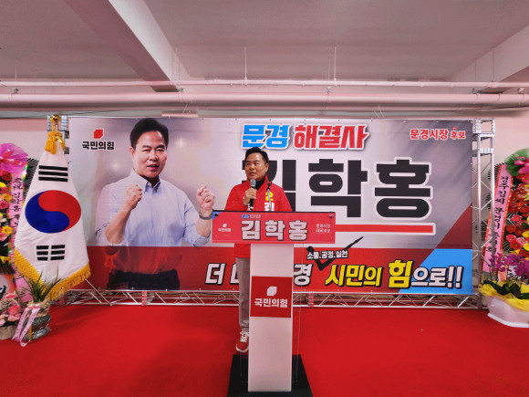 김학홍 문경시장 예비후보가 14일 오후 2시, 지지자들의 뜨거운 성원 속에 선거사무소 개소식을 열고 본격적인 선거 행보에 돌입했다.