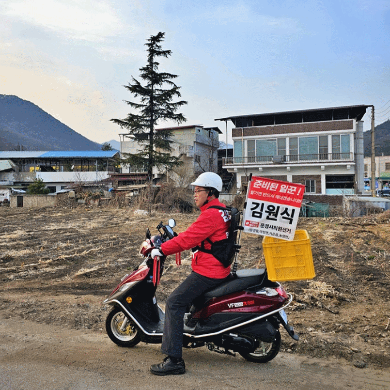 문경시 시의원(가선거구:문경읍·마성면·가은읍·농암면) 국민의힘 예비후보로 등록한 김원식 문경미래발전연구소(문미연) 대표가 지난주 13일부터 오토바이를 타고 민생 현장 곳곳을 누비는 이색 선거운동을 펼쳐 화제를 모으고 있다.